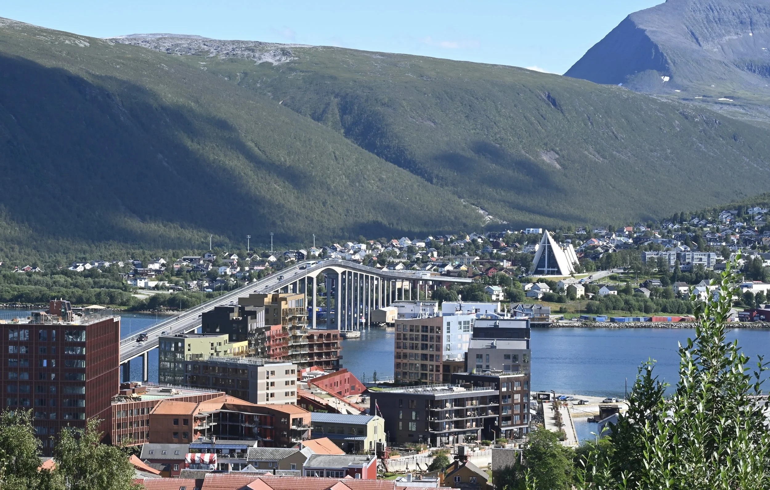 View of Vervet, Tromsø bridge and the Arctic Cathedral.