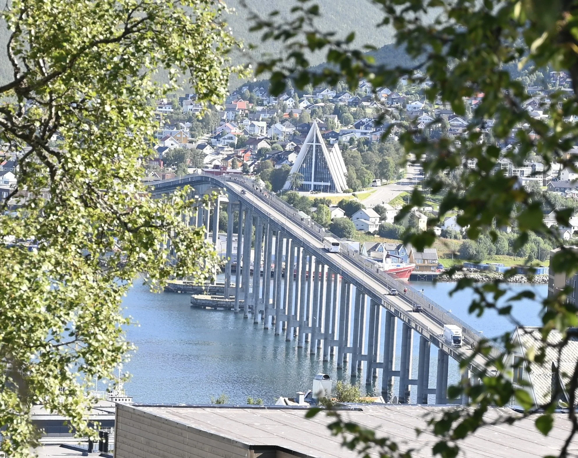 The iconic Tromsø Bridge connects Tromsøya with Tromsdalen, a district on the mainland.